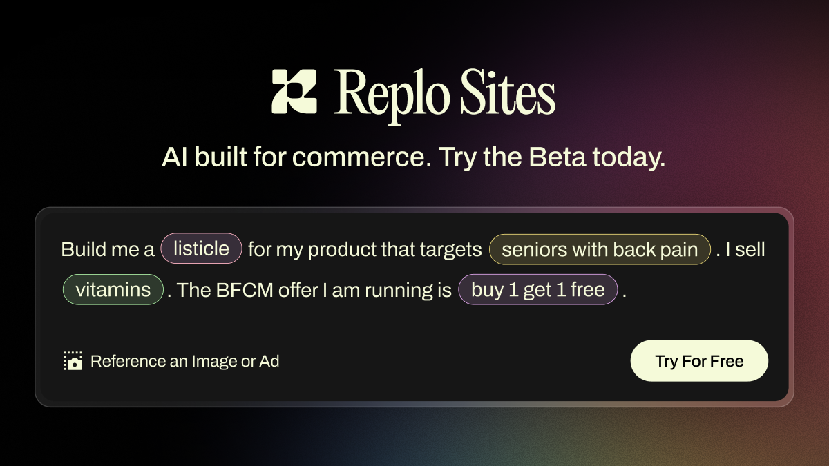 Replo Sites helps you build and launch complete sales funnels in minutes, simply by chatting with AI. Think: Lovable built for commerce. Try it for free today!