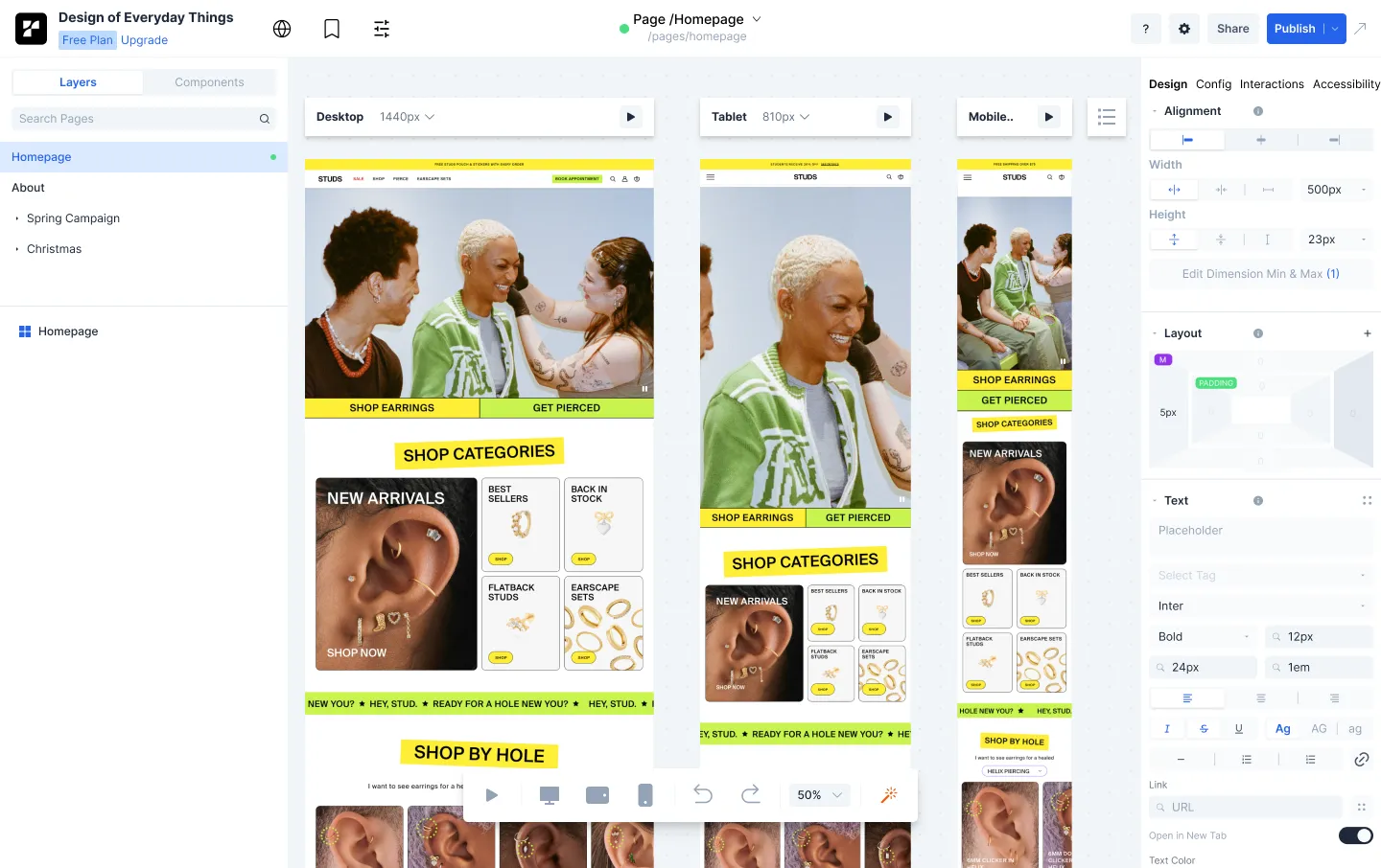 - View all 3 device frames simultaneously in Replo