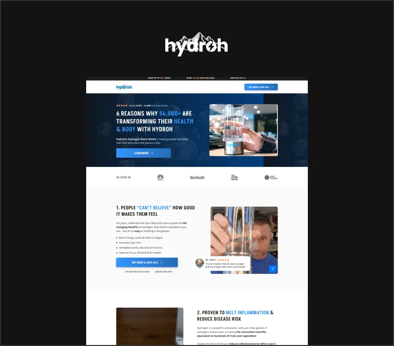 A powerful guarantee in the hero works with strong social proof from medical authorities and authoritative publications to highlight the product’s health benefits.