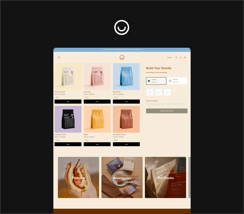 Clean, pastel-toned page design featuring a bundle builder gives shoppers the flexibility to customize their orders to taste.