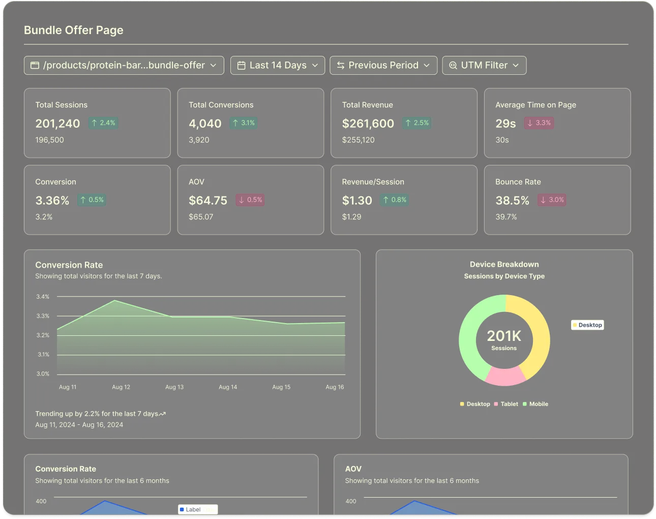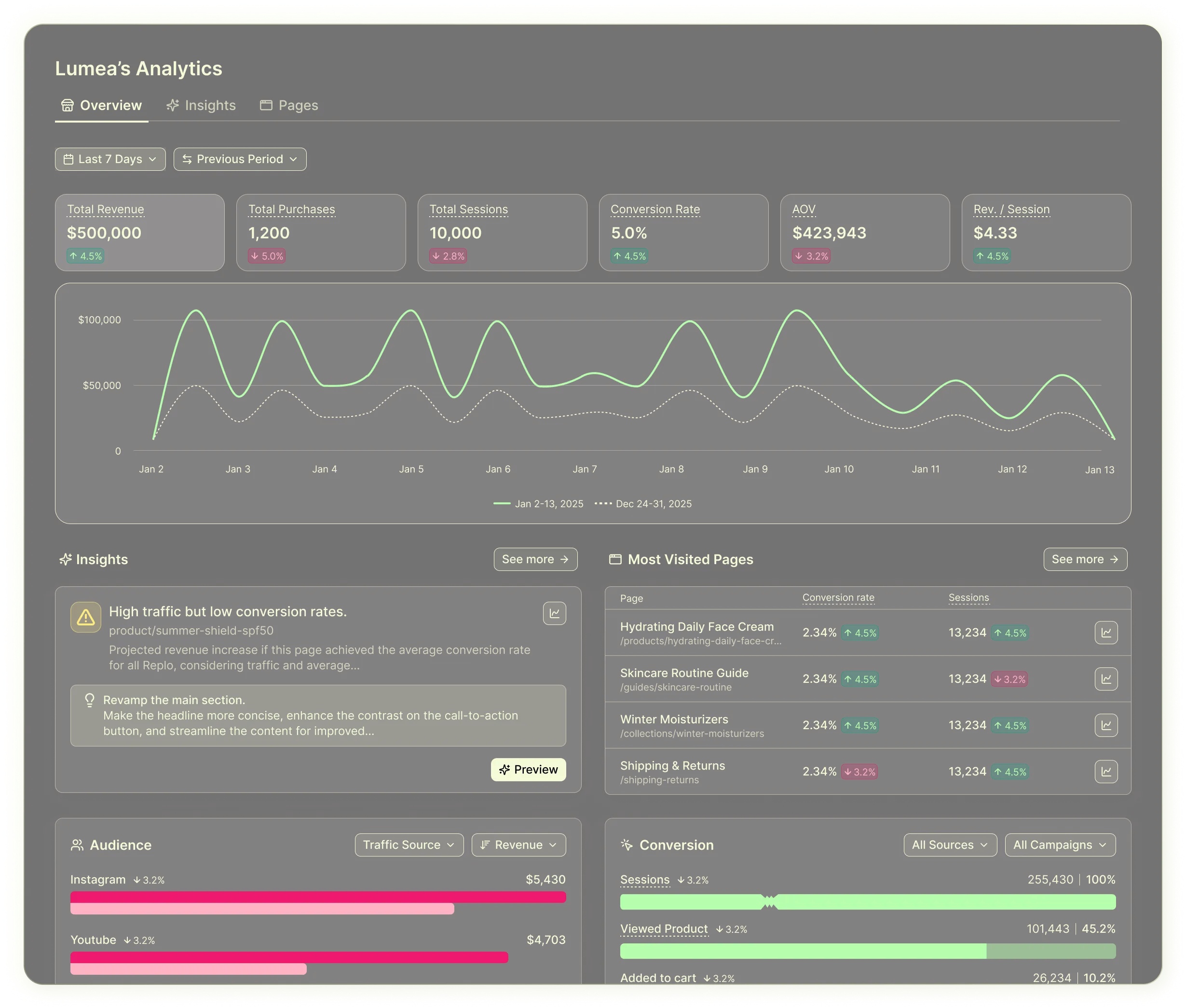 Track individual page performance over time. Get key insights to inform edits across your store pages and campaigns.