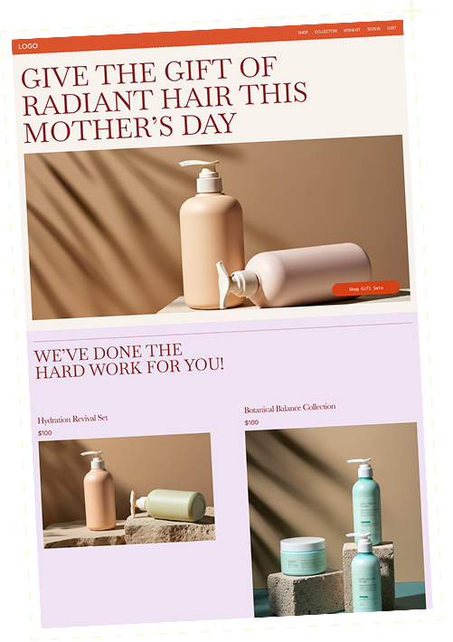 Because of that focus, they’re flexible: great for custom influencer product pages, exclusive membership sign-up pages, brand ambassador product giveaways, A/B tests at each stage of the marketing funnel, or limited-edition seasonal drops. Brands can even build entire sites from a collection of landing pages, each one focused on a specific audience or goal.