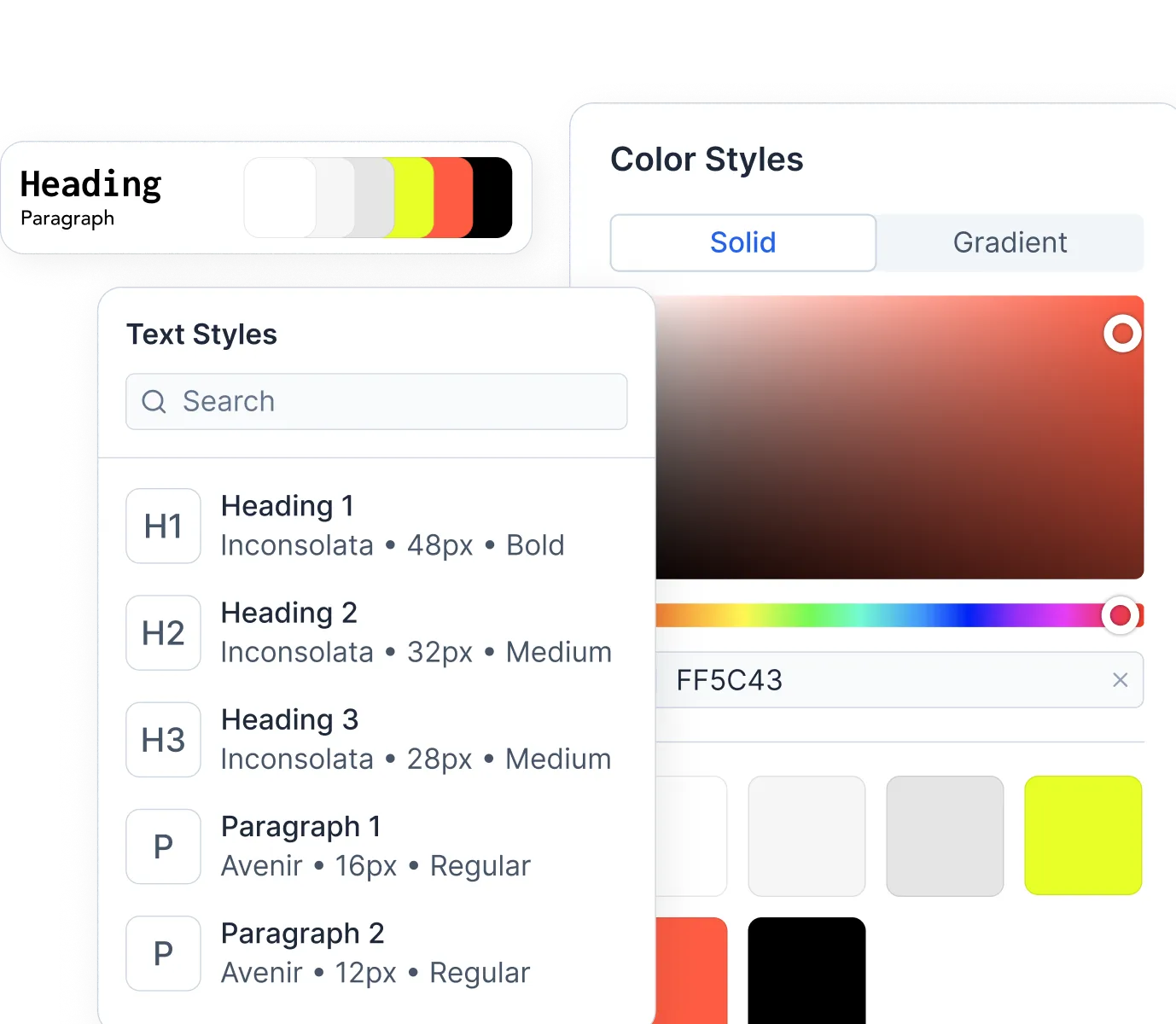 Import your brand styles and apply them to any of our templates, inspired by industry-leading brand pages.