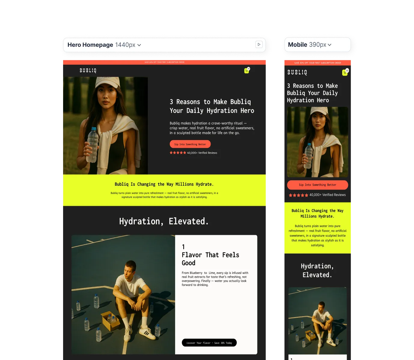 Landing pages built in Replo are not locked into rigid templates like many other ecommerce tools such as Shopify, so you can explore bold, custom designs that feel uniquely yours. This gives brands the flexibility to test and track every part of their page; you get to iterate towards scaling any conversion goal.
