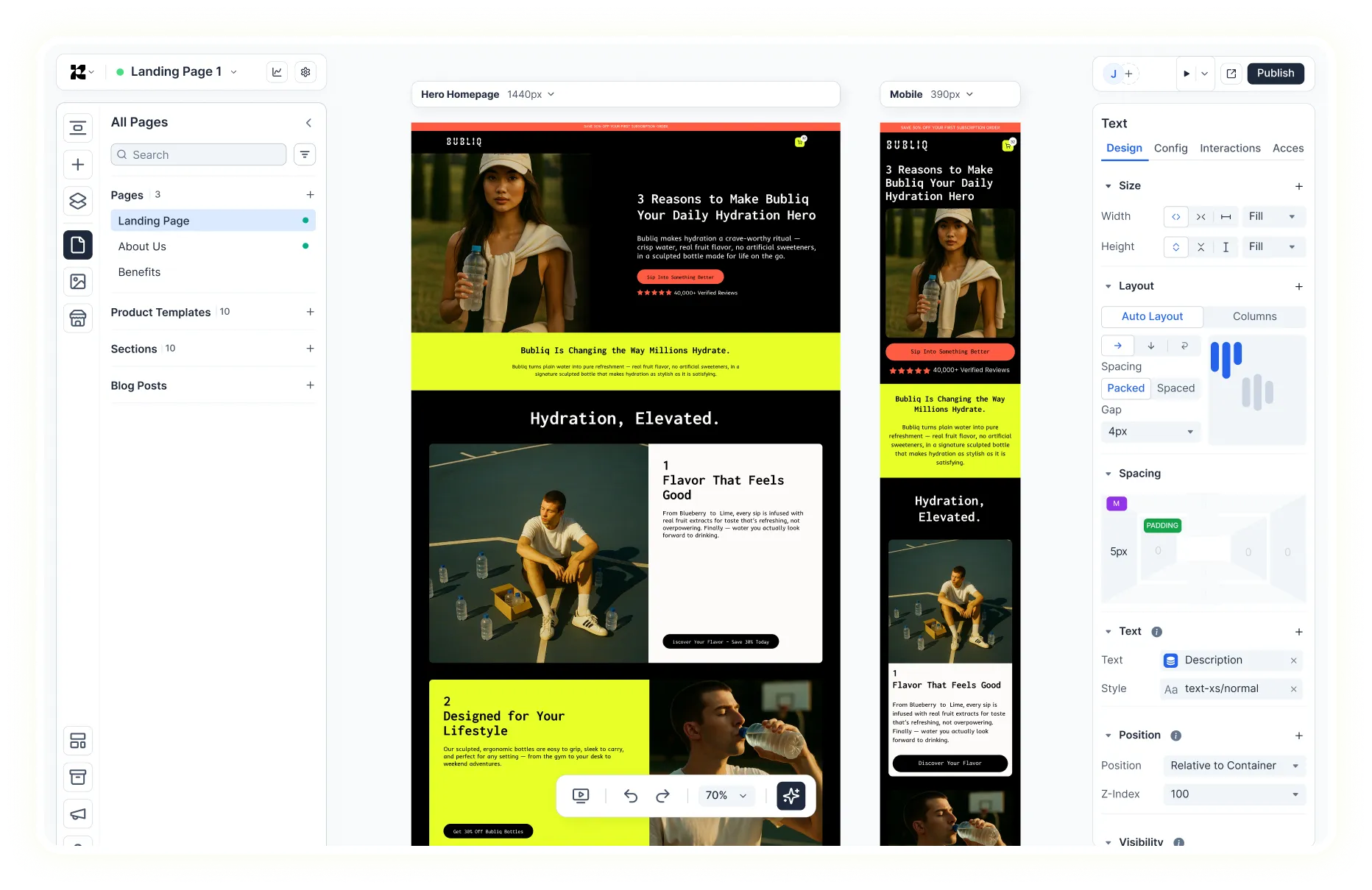 Because of that focus, they’re flexible: great for custom influencer product pages, exclusive membership sign-up pages, brand ambassador product giveaways, A/B tests at each stage of the marketing funnel, or limited-edition seasonal drops. Brands can even build entire sites from a collection of landing pages, each one focused on a specific audience or goal.
