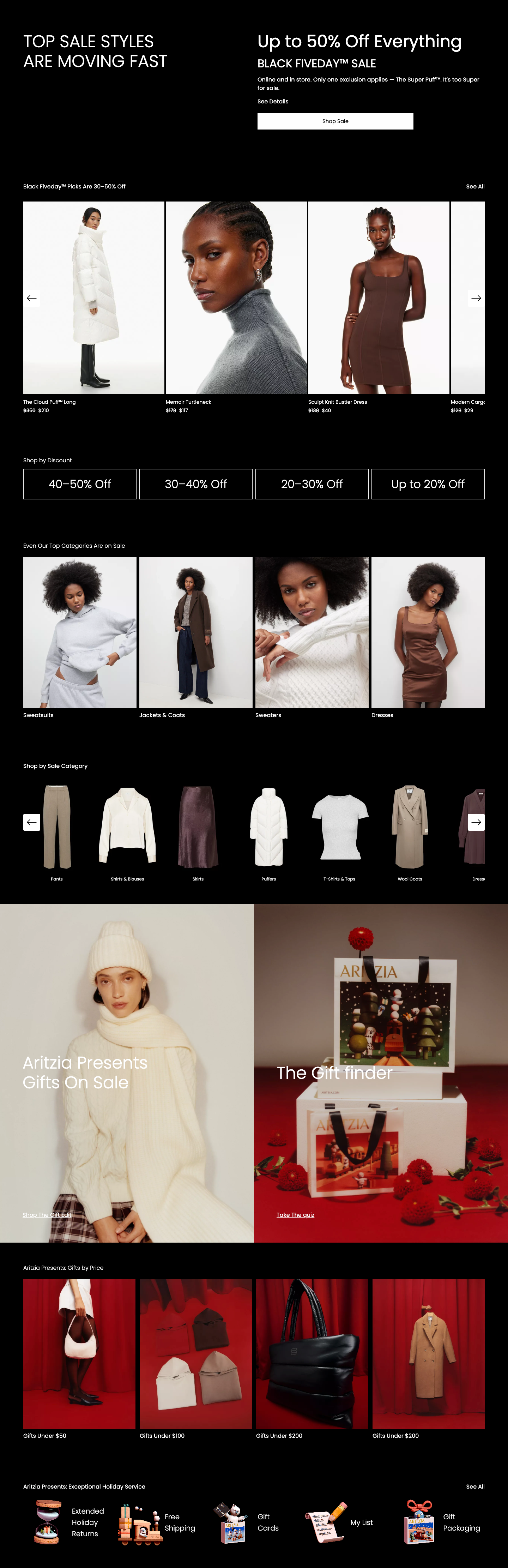 Aritzia Black Friday Landing Page